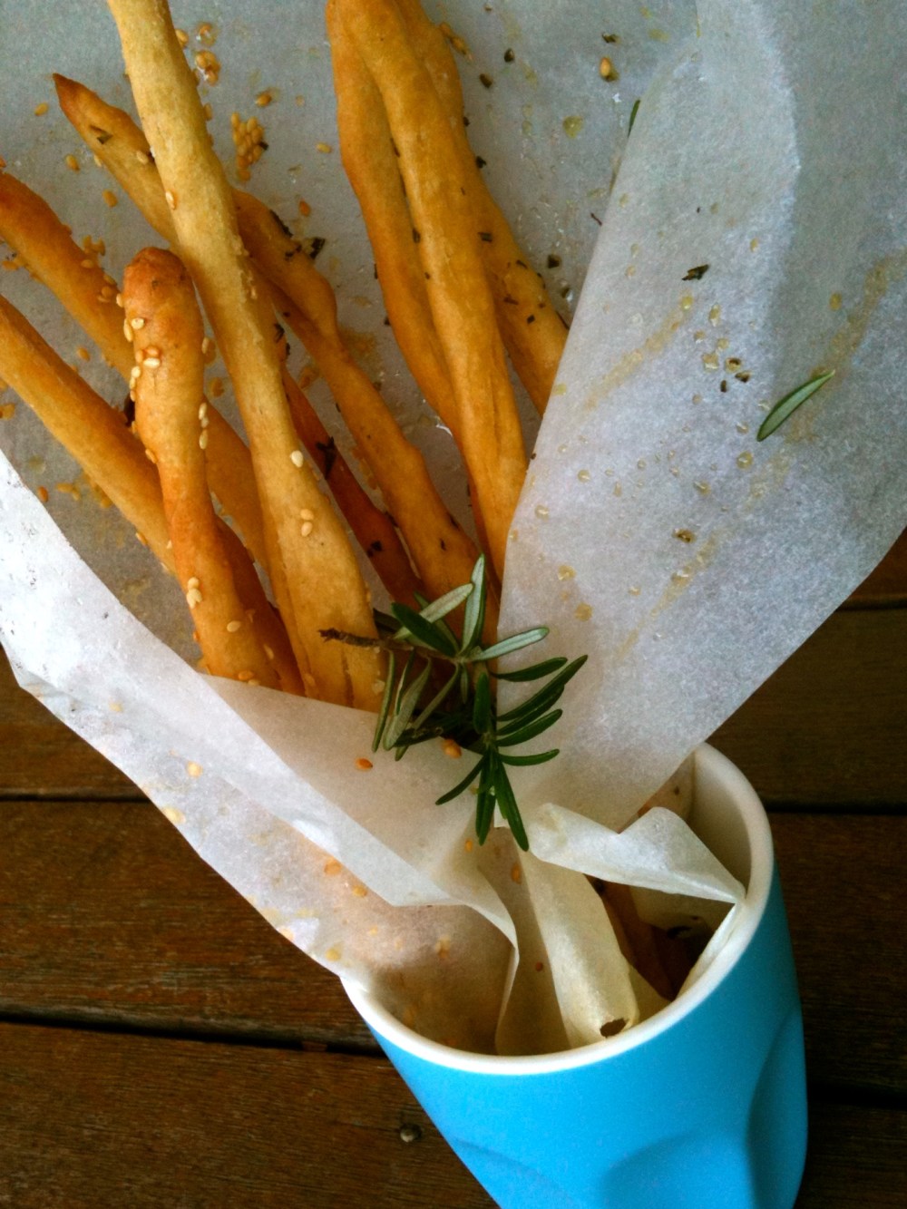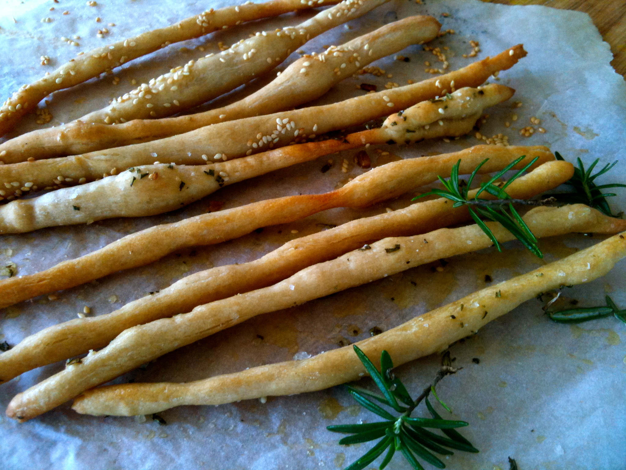 Grissini have become very popular world-wide and there are plenty of varieties offered on the market, but they hardly compare to the fragrant crispness of home-made ones. Their irregular, gnarly shape and sun-burnt colour are the promise of something delicious. They look so inviting, they must be good for you!