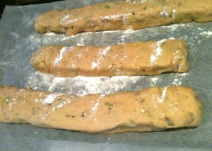 I used my hands to shape the dough into three sausages and I baked them in a medium oven for around 25 minutes.