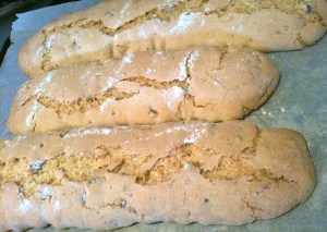 I put the sliced dough back on the tray and into the oven and toasted each side for about 5 minutes.