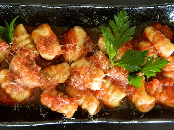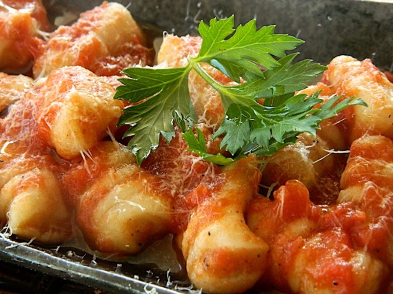Gnocchi all’Aglione (home-made gnocchi with Tuscan garlic tomato sauce)