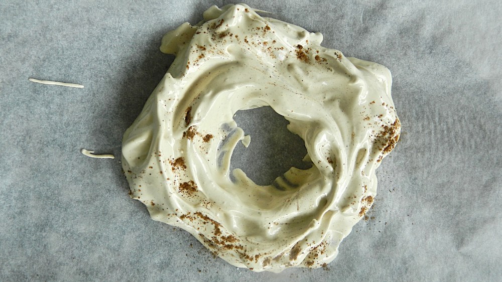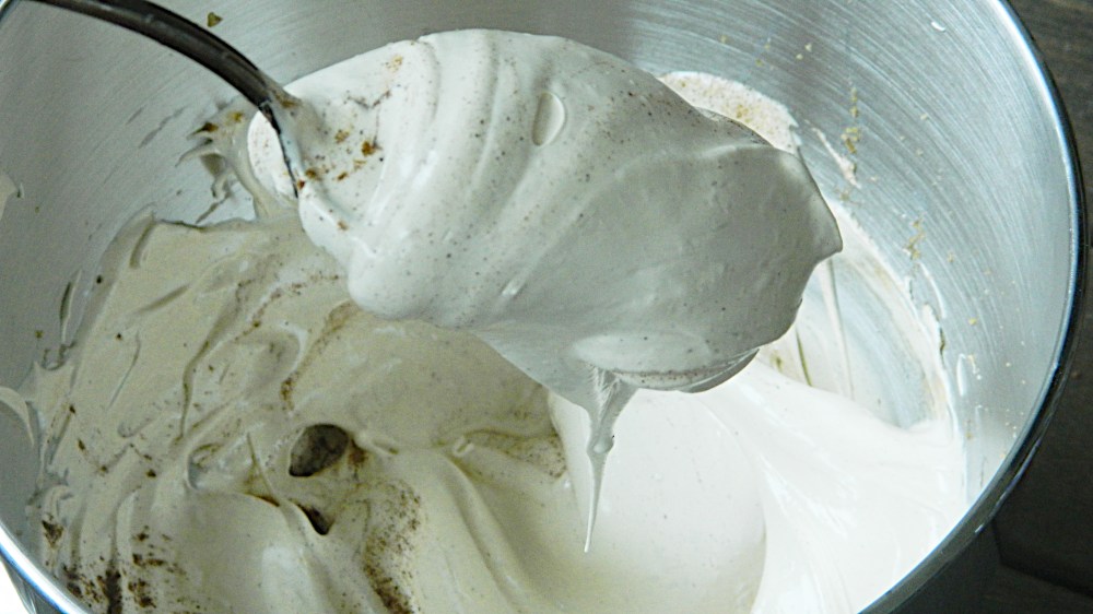 Add vanilla, cloves, corn flour and vinegar and mix gently to incorporate them into the meringue.