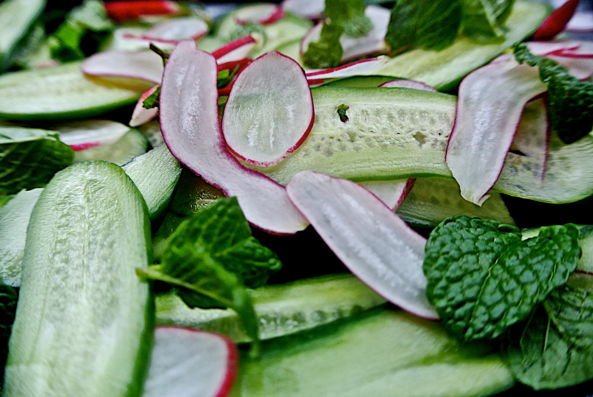 Salad Double Bill! Cucumber, Mint and Radish/Roasted Greens and Chickpeas