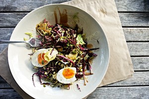 Boost your immune system! Shredded Radicchio, Brussel Sprouts and soft boiled egg Salad