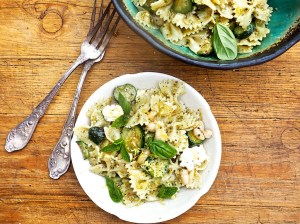 Farfalle with Walnut and Zucchini Pesto and Beans