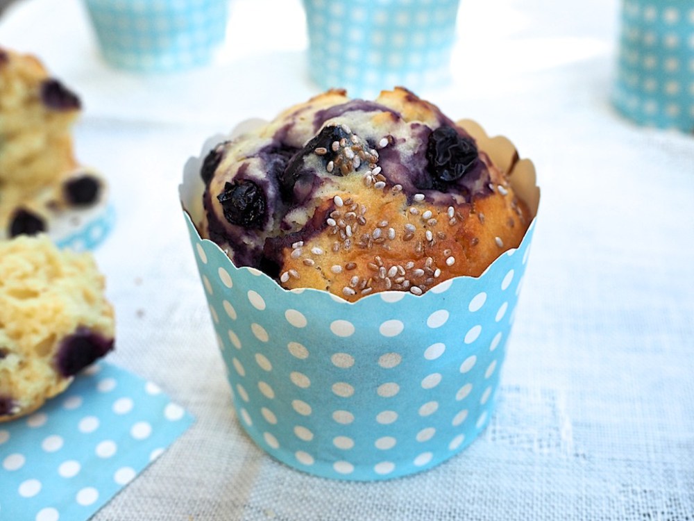 These muffins are my ideal solution to the wet and blistery day ahead of me, a perfect mixture of moist, diary free cake enhanced by precious blueberries and chia seeds, my go-to health boosters. You can use gluten free flour if you are so inclined and reduce the, already low, quantity of sugar of swap it altogether with honey or other natural sweeteners, although I wouldn’t recommend stevia or natvia as they can leave a strange aftertaste. Over to you and your need to lift up your mood!